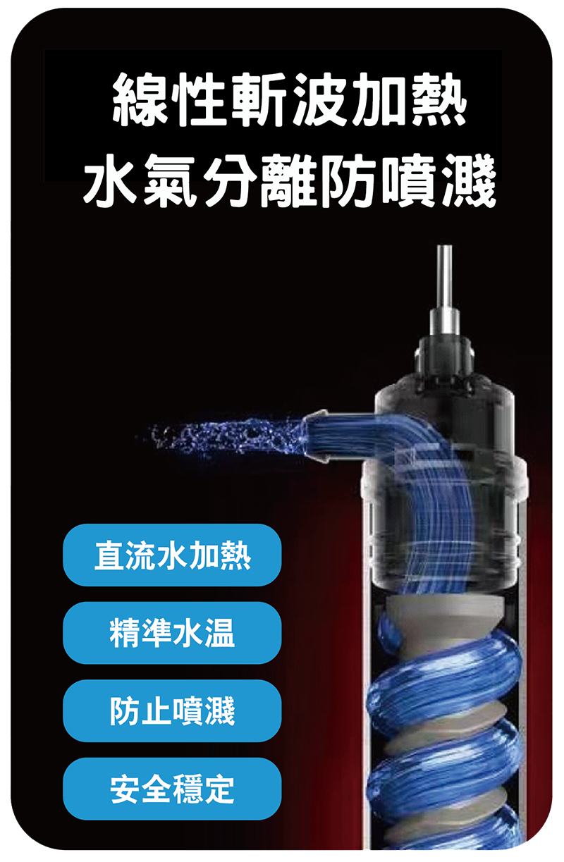 • 水氣分離 線性加熱技術,分離氣水,避免突然噴灑燙傷。