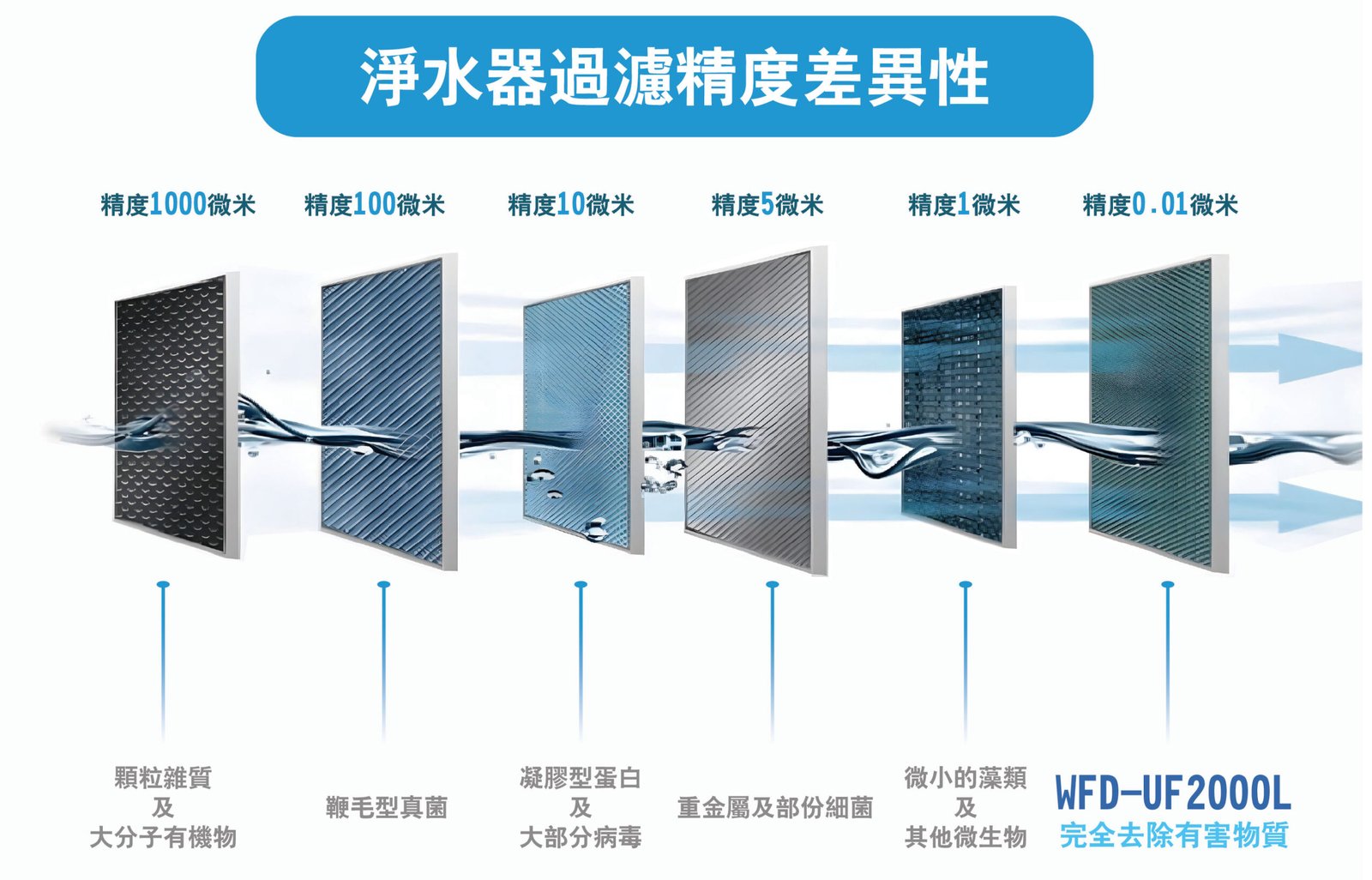 過濾至0.01微米,不僅讓水看起來清澈,還能改善水的口感,讓您和家人享受更健康的飲水體驗,確保每一滴水都清澈純淨。